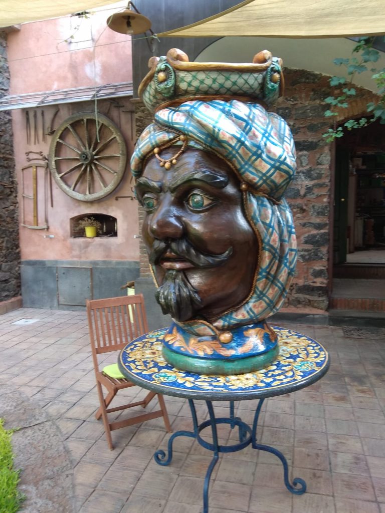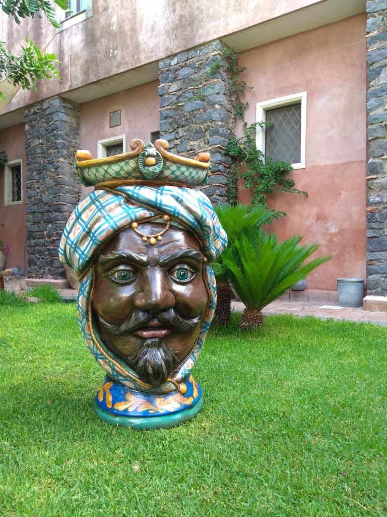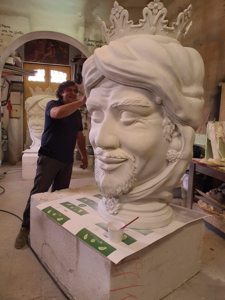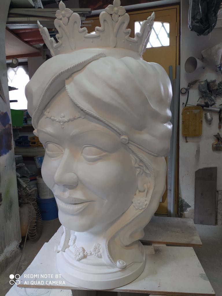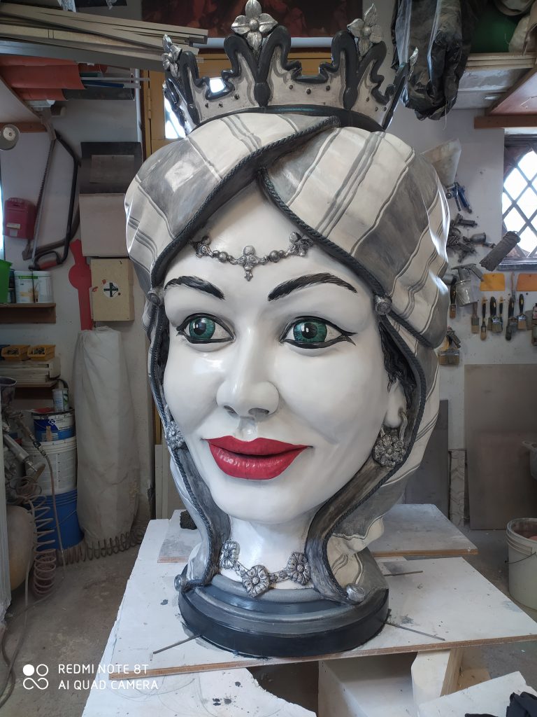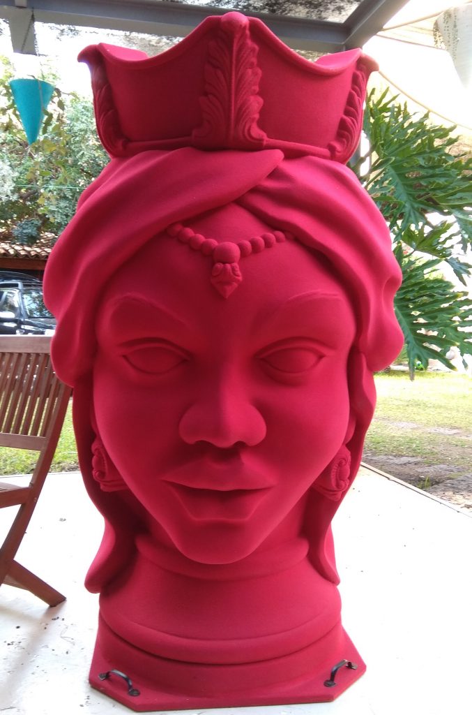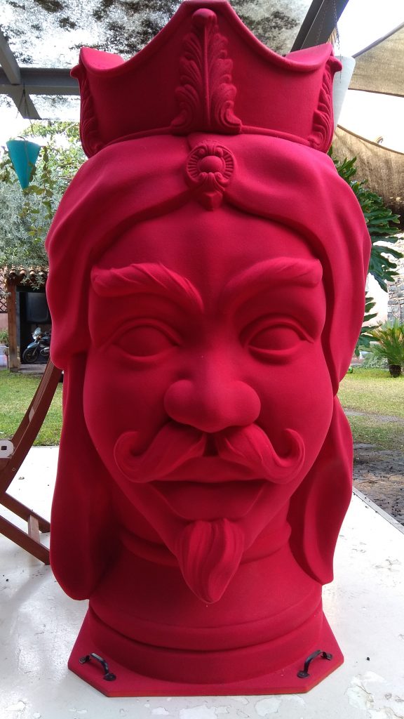 Testa di moro realizzata in polistirolo resinato colorata con smalto ad acqua protetto da una vernice poliuretanica bicomponente